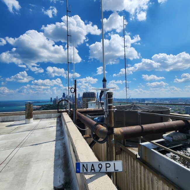 Jest, stało się, mamy to! Nasz przemiennik Fusion, 440.250Mhz, ma nowy dom i to nie byle jaki bo ten znajduje się 3 mile na północ od centrum Chicago i jest na wysokości około 450 stóp (150 metrów) nad poziomem ulicy. Może to jeszcze nie szczyt, ale wysokość, na jakiej mamy antenę sprawia, że mówiąc, iż…